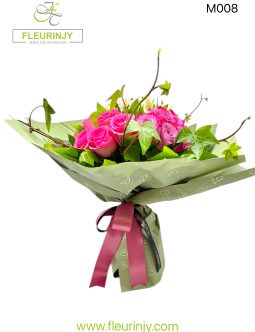 THE PERFECT HAND BOUQUET 22 ROSES 5 ALSTROEMERIAS GREENS WRAPPED IN OUR SPECIAL WRAPPING PAPER