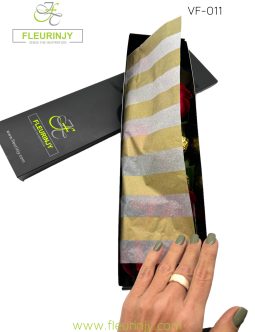 OUR GOLDEN SIGNATURE DRAWER BOX: 10 GREEN BABY ORCHIDS 9 YELLOW ROSES 3 ORANGE CALLA 3 WHITE ANTHURIUMS 3 WHITE BABY ORCHIDS 16 pieces ROCHER SIZE: 20 X 50 CM
