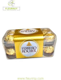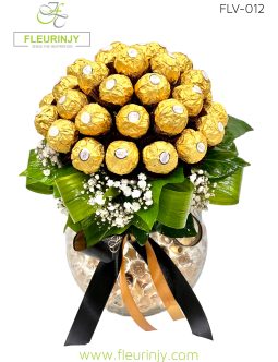 Chocolate bouquet in a fish bowl inside it : 22 rocher chocolates baby breath greens Size: 20 cm