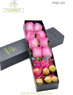 OUR SIGNATURE SLIDING BOX: 8 PINK ROSES PINK THREADS 1 BUTTERFLYÂ 6 rocher