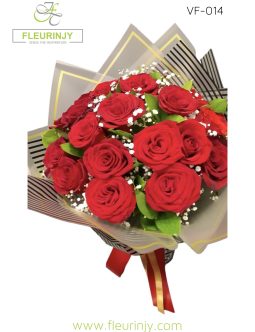 Our Signature drawer box inside it : Ingredients : 11 red roses, 3 white roses, 3 yellow roses, 4 white anthuriums, 3 yellow calla, 4 baby orchids & greens size: 25 x 60 cm Chocolate : 16 rocher