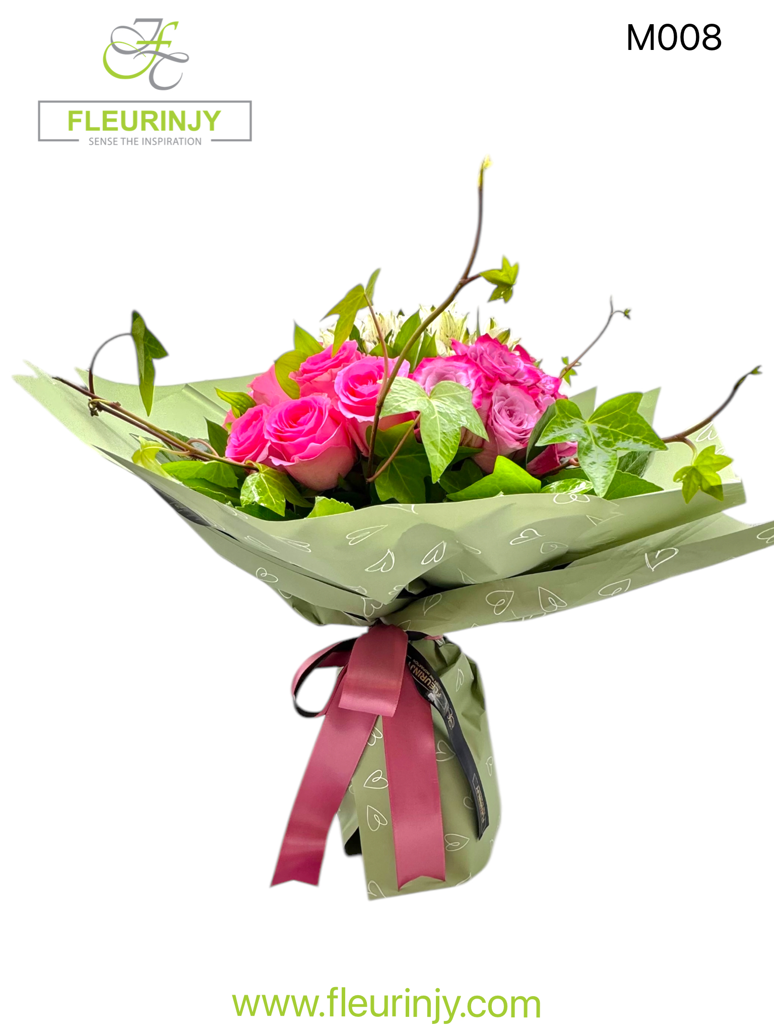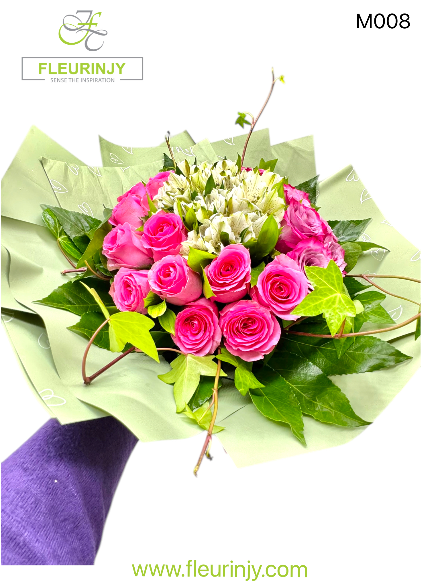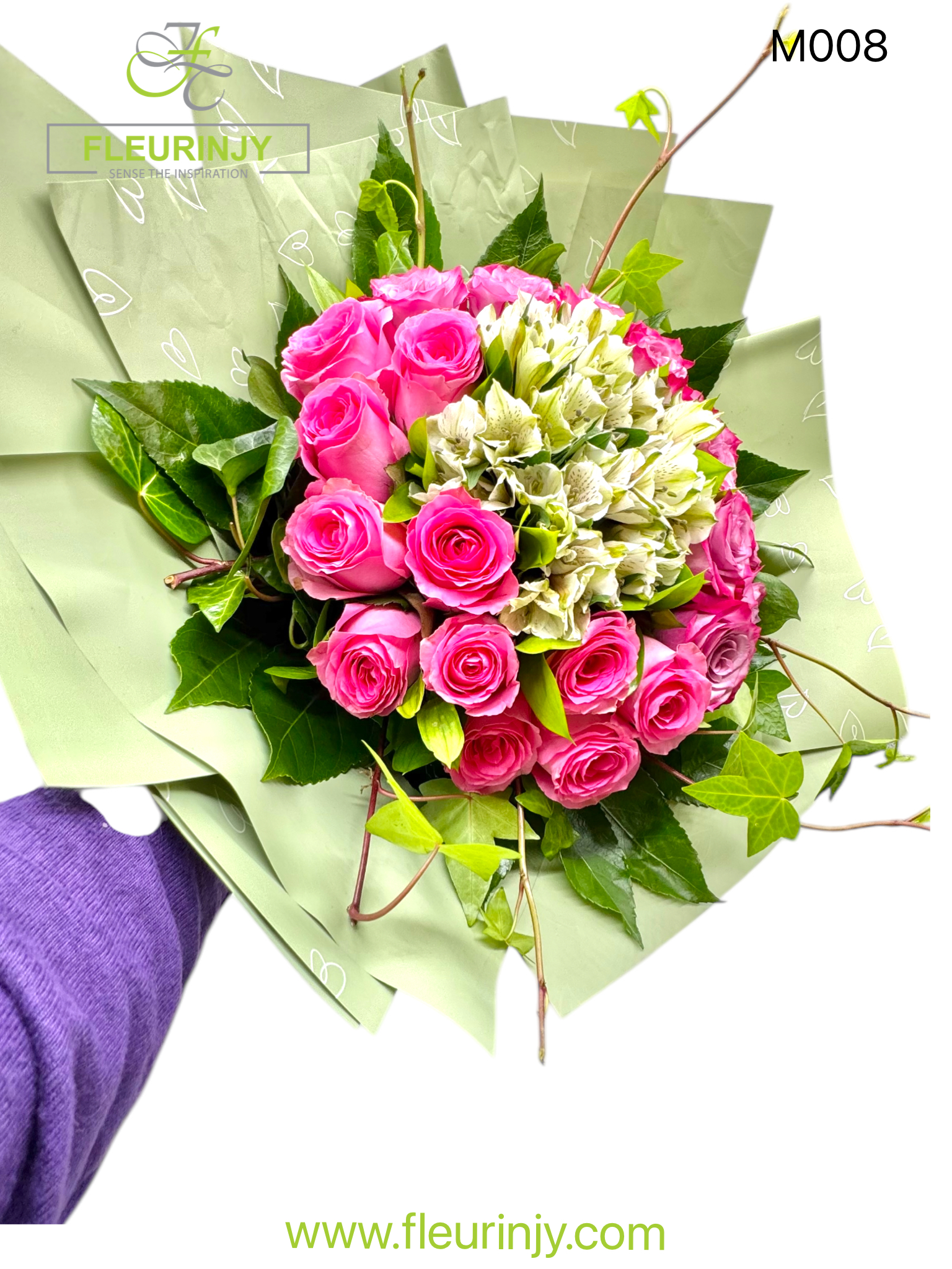THE PERFECT HAND BOUQUET 22 ROSES 5 ALSTROEMERIAS GREENS WRAPPED IN OUR SPECIAL WRAPPING PAPER
