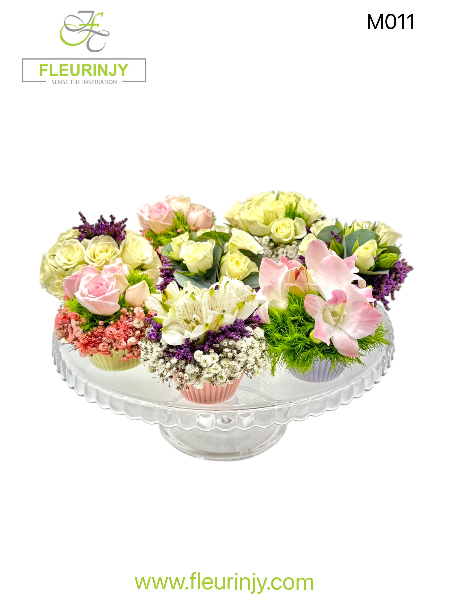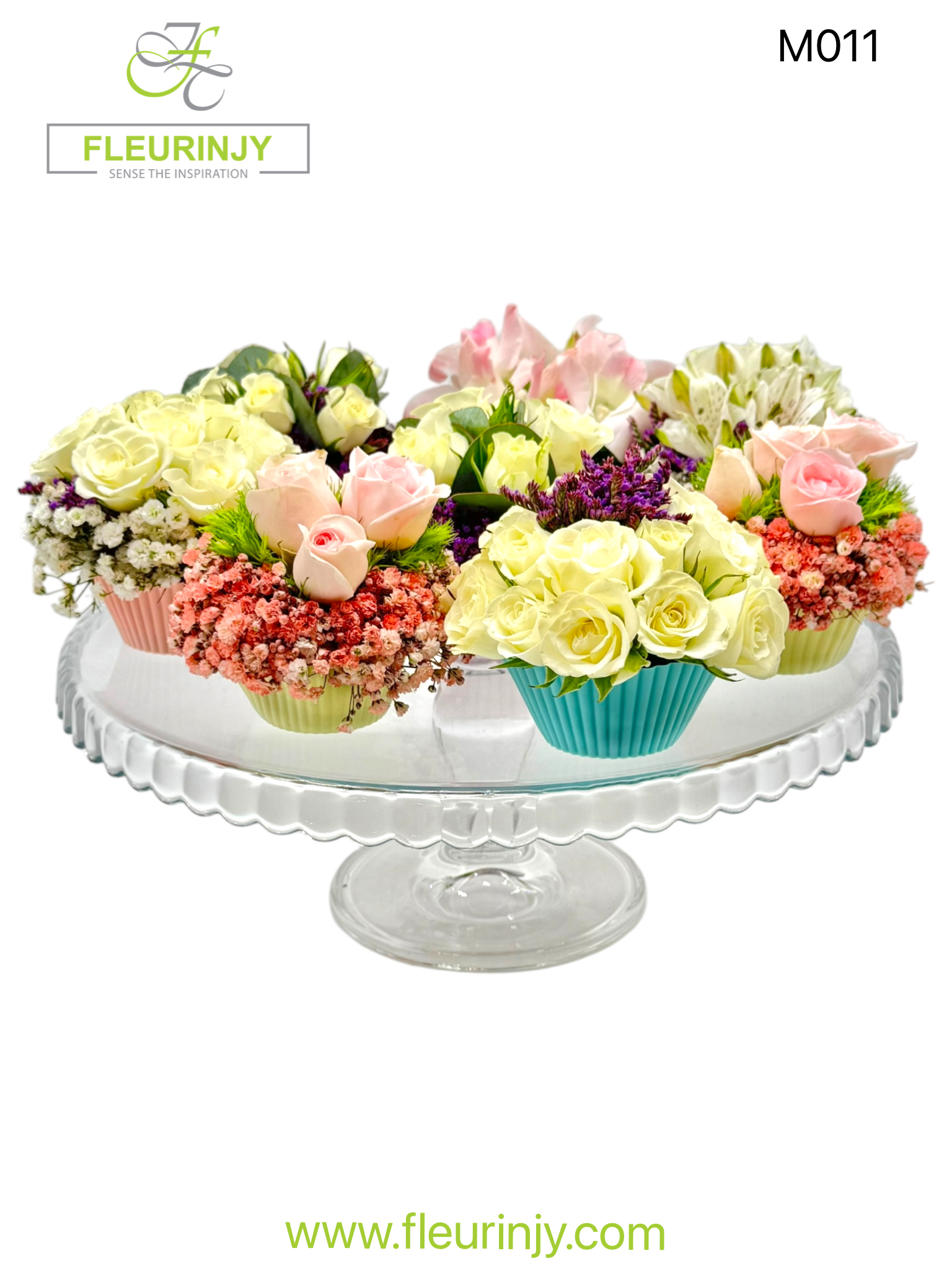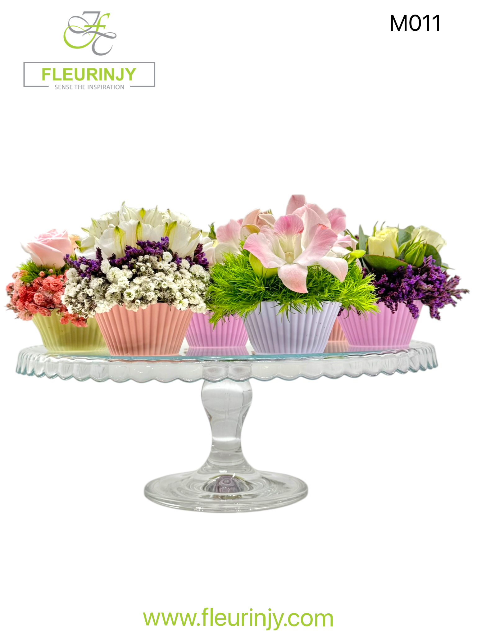 THE CUP CAKE GLASS STAND TURKISH Pasabahce GLASS PLATE 8 ASSORTED FLOWER CUPCAKES IN SILICONE MOLD