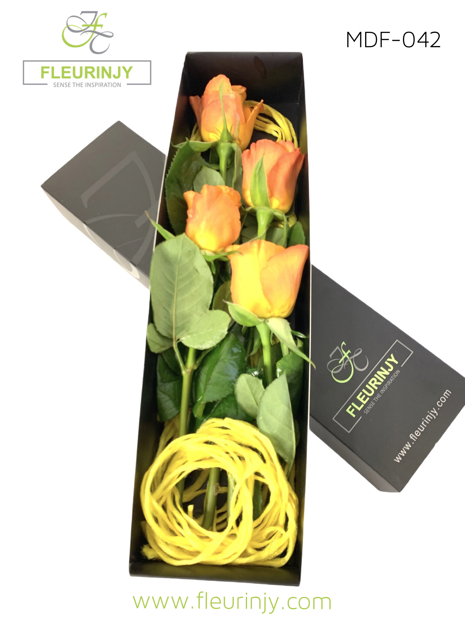 Description: Our Signature Box Size 40 x 10 Cm 4 Orange Roses